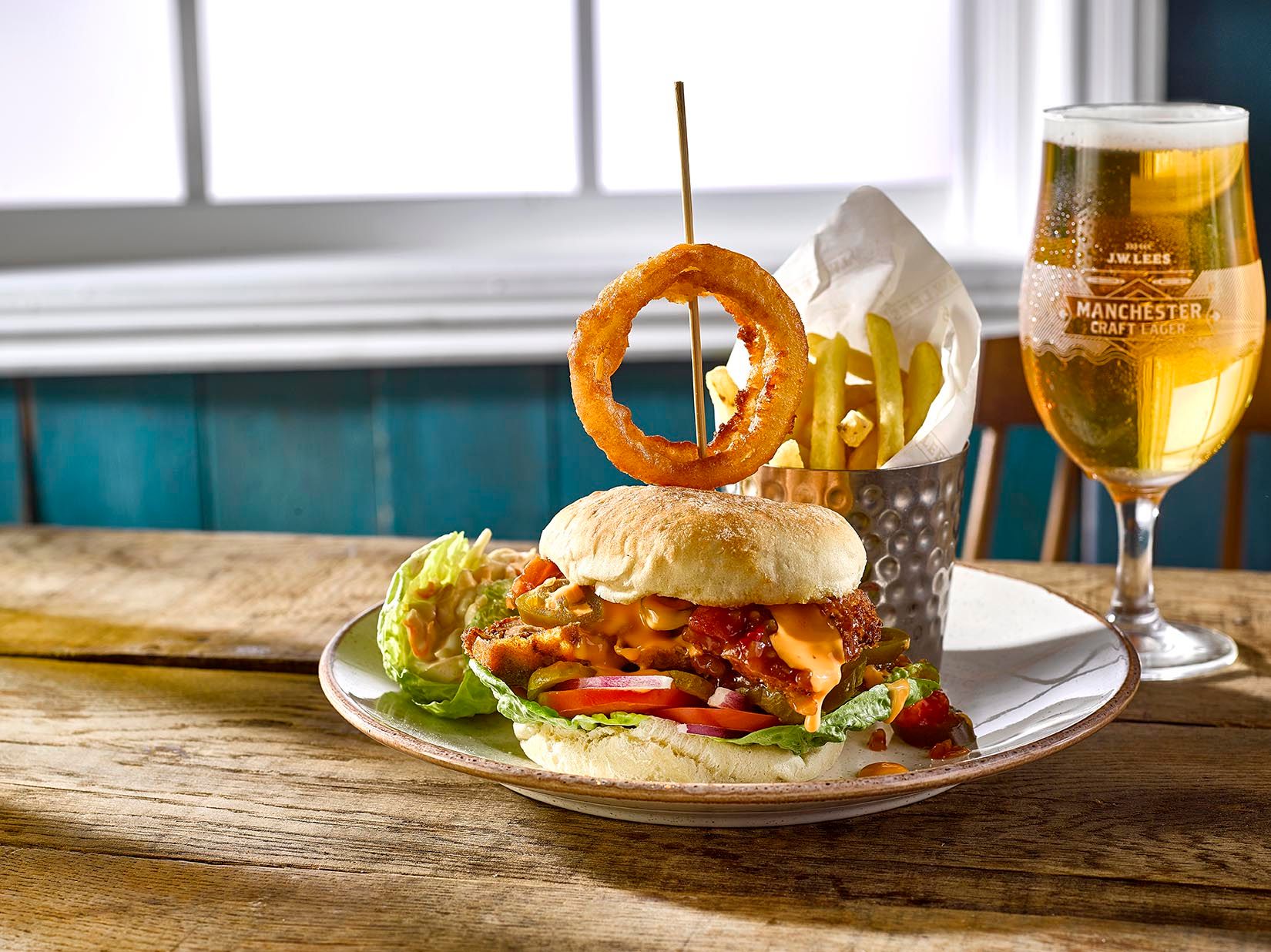 (V) – suitable for vegetarians, (VG) – suitable for vegans, (VGA) – vegan option available, (NGCI) – No Gluten Containing Ingredients, * Can be cooked without gluten. POA = Price On Application. Please ask your server for the price. lf you suffer from a food related allergy please inform a team member for advice before you order. Not all ingredients are listed on the menu & our kitchen uses nuts, gluten and other allergens. Although every care is taken to prevent cross contamination of allergens we cannot guarantee it. Should the listed product be unavailable due to circumstances affecting the supply chain it may be replaced by a similar alternative product. Fish may contain bones. Cooking oil may contain genetically modified ingredients. The calories listed are per serving, additional items to a dish (eg: sauces) are listed separately. Adults require around 2000kcal per day. Weights stated are uncooked and approximate. Prices are GBP. *MPA is our JW Lees Manchester Pale Ale; a golden ale brewed in Manchester entirely from all British malt.
